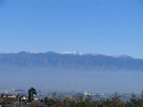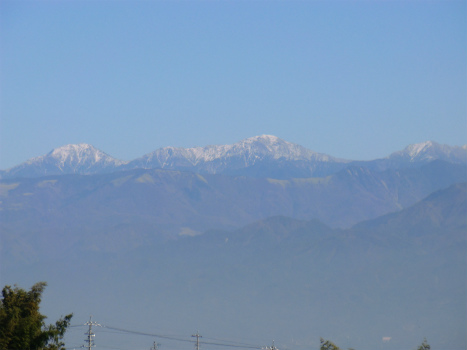 国道を避けて農免農道へ車を進めると、雪をいただいた南アルプスがくっきりと現れた。