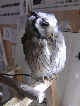 カミさんに「ちょっと、これ見て」と誘うと、突然動いたコノハズクにビックリ。