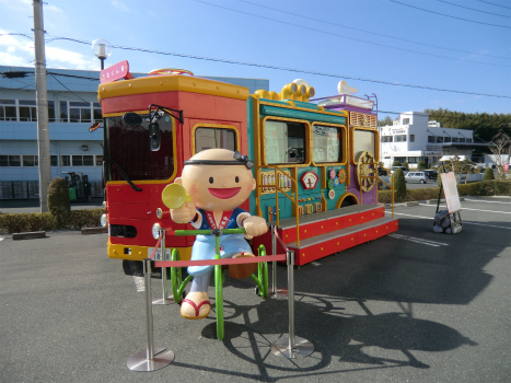 向上の玄関前には子供が見たら喜びそうな電車が。