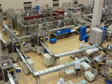 働いている社員は不良品のチェックと、製品をバットに入れて次の工程へ渡す作業のみ。