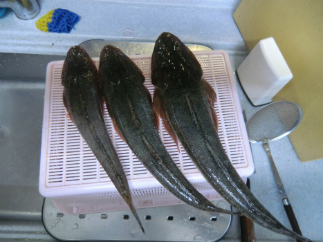 マゴチの煮魚とシャコの茹であげを肴に、今晩の晩酌をいただいた。