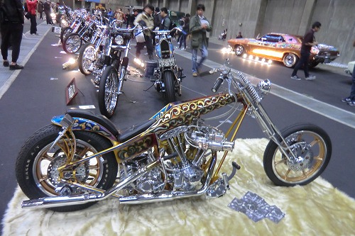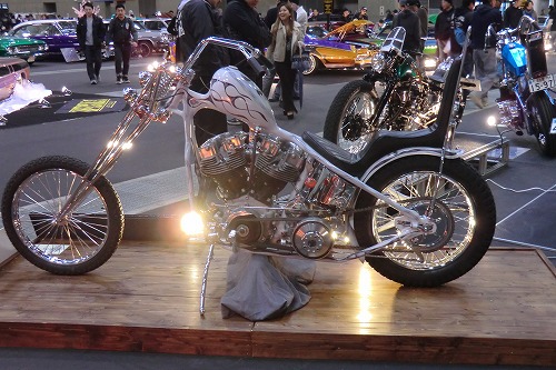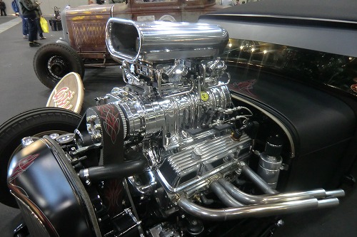 ドラッグスターのエンジン、平べったい黒いベルトはスーパーチャージャーを駆動するものだろう。