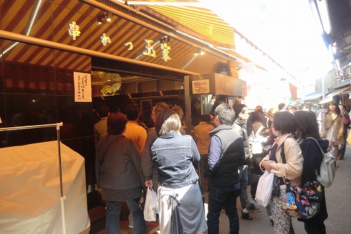 平日にもかかわらずかなりの人出、ここで一番の有名店「玉家」の店の前は御覧の通り。