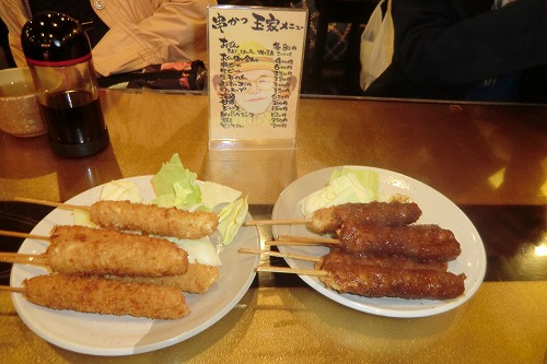 ボクらも玉家で串カツとどて煮とうどんで腹を満たす。
