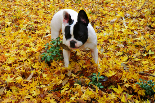 面ノ木ビジターセンターに車を止め散策路を歩くと、黄色に染まったモミジが。
