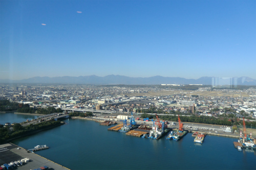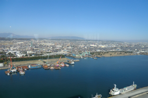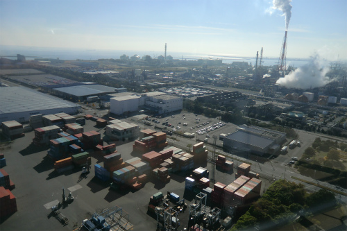 四日市港のシンボルポートタワーの最上階から港を一望した。
