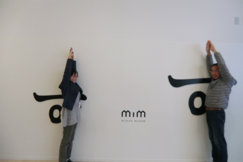 カミさんとちょっとした人間文字でお遊び、「す」の字(ピンボケしているのは顔を隠すため)