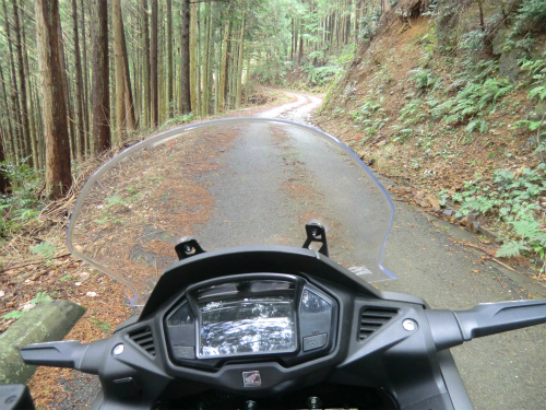 三叉路で展望台へのルートと思われる看板があり、バイクを進めるが、これがまたとんでもなく細い道。