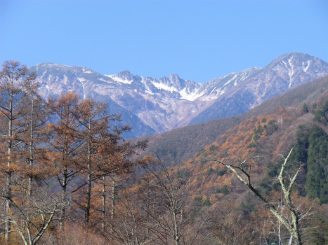 店の西方には雪の木曽駒が雄大な姿を見せている。