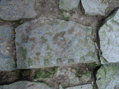 石段の石には割るときに用いた楔の跡が残っているものがある。