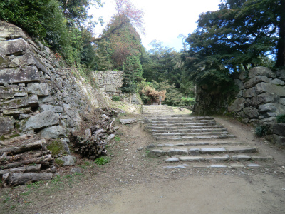 標高199mの安土山の山頂に築かれた城は、延々と石段が続く。