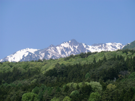 左の峰は鋸岳?中央は甲斐駒ヶ岳だろうか。