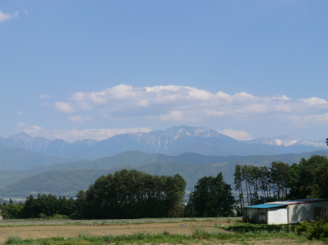「展望台」の案内があり、そこから中央アルプスを望むことができる。