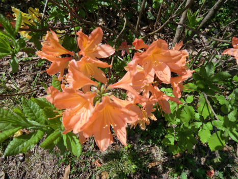 時間があるのでSA内を散策すると赤、黄、橙色のレンゲツツジが咲いていた。