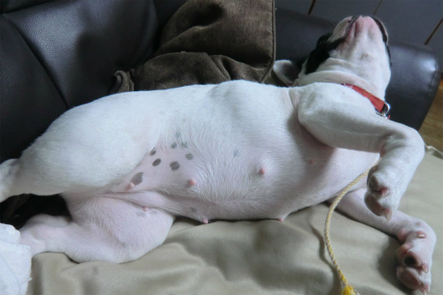 生理中が始まると乳首が大きくなってき、8個の乳首がはっきり確認できる。