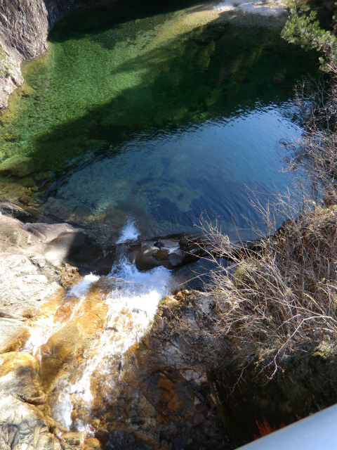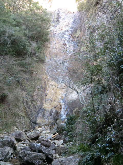 水量の少ない今はしぶきが凍りつき、日の光が反射している。