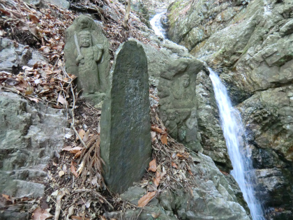 沢が二手に分かれ、左手をしばらく行くと、地元の人が祀った不動尊がある。