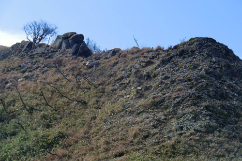 杉峠から雨乞までは急登が続き、さらに、ここから見えるピークが山頂ではなく、ピークを2つ越えなければならない。