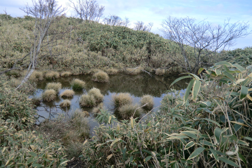 こんな笹原を歩くのだが、登るにつれ笹はさらに背を高くし、我々の肩ほどの高さになる。