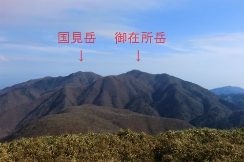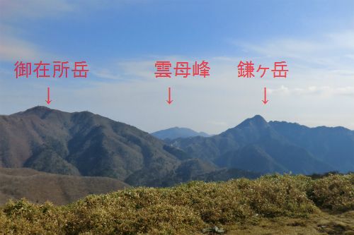 御在所岳と雲母峰(キララミネと読む)、鎌ヶ岳。