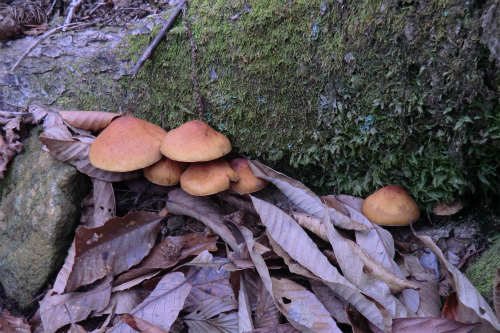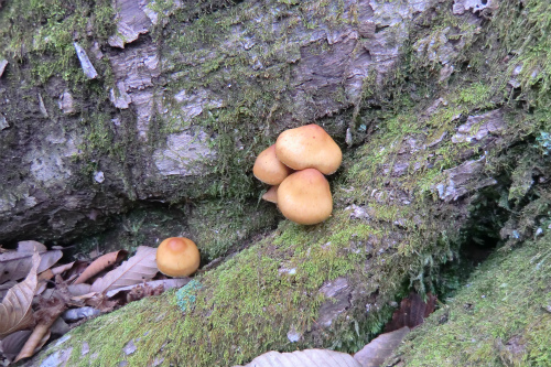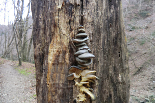 帰路はメインルートを歩く。すると食用のヒラタケが、もう少しきれいに採ってほしいな。