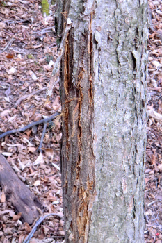 「クマ出没注意」の看板を見かけたが、幹にクマの爪跡が。実際にクマがいるから侮ってはいけない。