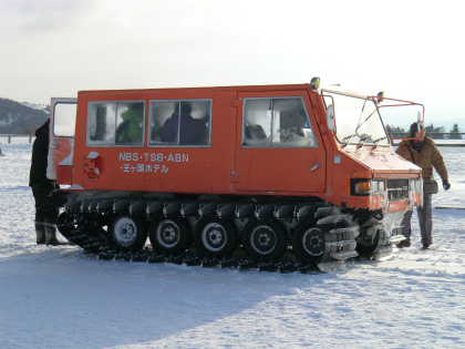ここへ雪上車が出現、まるで南極に来たようだ(ちと大袈裟か)