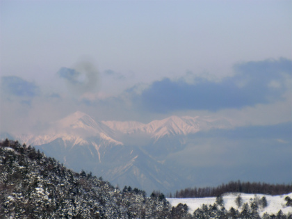 同行者が「常念岳が見える」の声に目をやると、北アルプスの山を見ることができたが、遠望できたのはこの時だけであった。