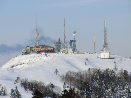 アンテナが林立する中に見えるのは王ヶ頭ホテル。