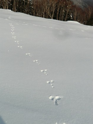これは野ウサギのもの、一体この雪原のどこで生息しているのだろうか。