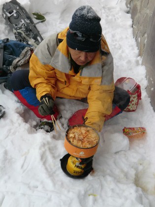 この頃には雲が出てきて、雪が降ってきた。