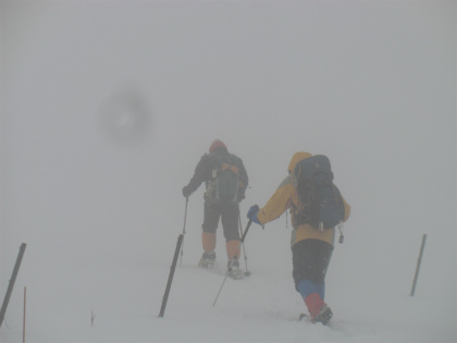 展望を望むことができなかったが、スノートレッキングを堪能した。