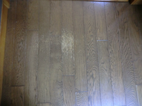 壁は綺麗になったが、モコが着けたフローリングの爪後をどうするか。