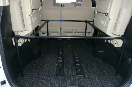 荷室の床の上に、寸法に合わせて切ったイレクターパイプを組む。