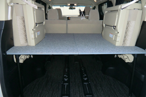 おそらくキャンプ道具はすべて、このトランクルームに収まり、仮に収まりきらなければ、板の上に置くだけである。