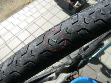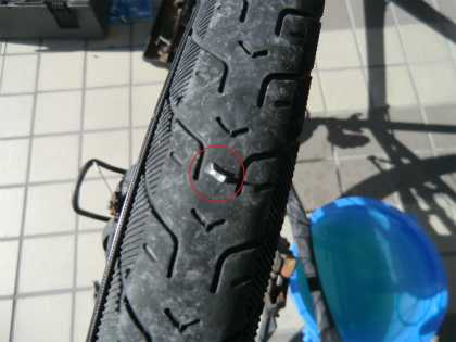 タイヤに空いた穴をみると、たしかにチューブまで穴が空いている。